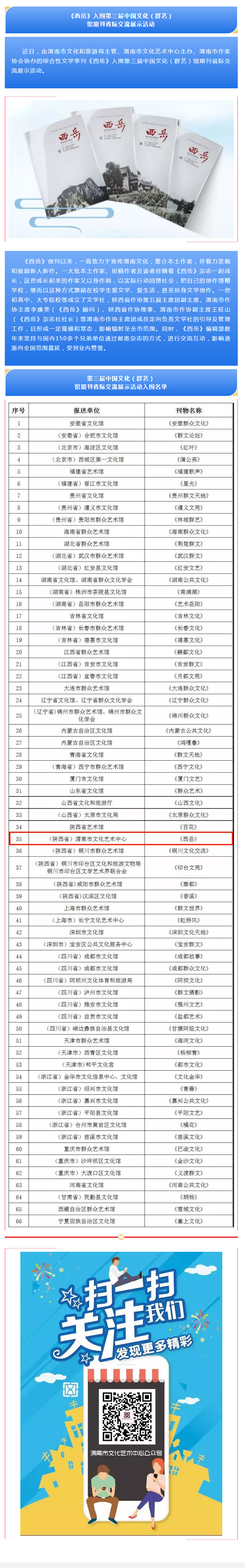 《西岳》入围第三届中国文化(群艺)馆期刊省际交流展示活动