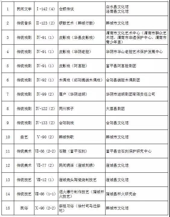 文化部权威发布: 渭南市15个国家级非遗项目保护单位名单