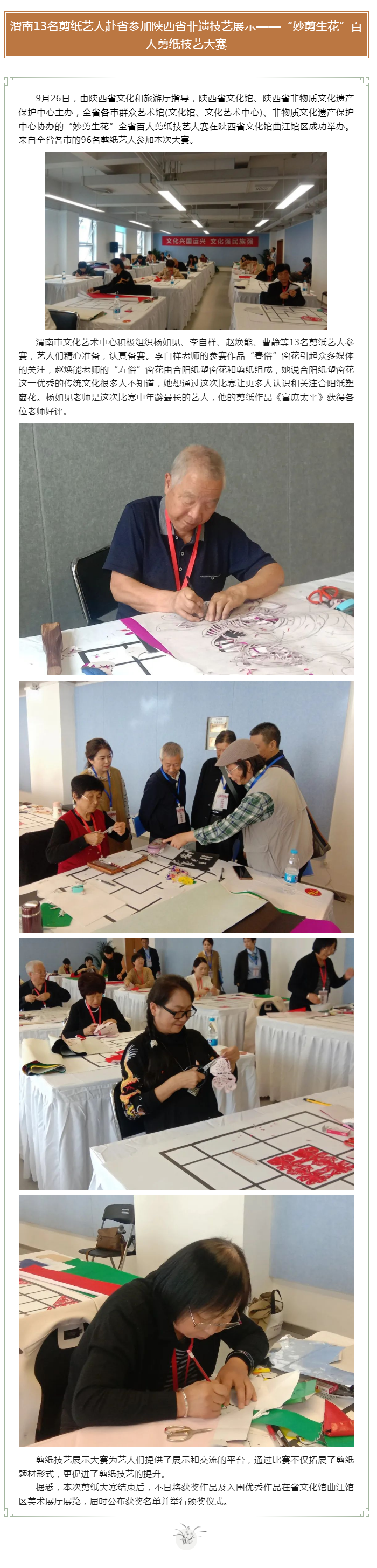 渭南13名剪纸艺人赴省参加陕西省非遗技艺展示——“妙剪生花”百人剪纸技艺大赛