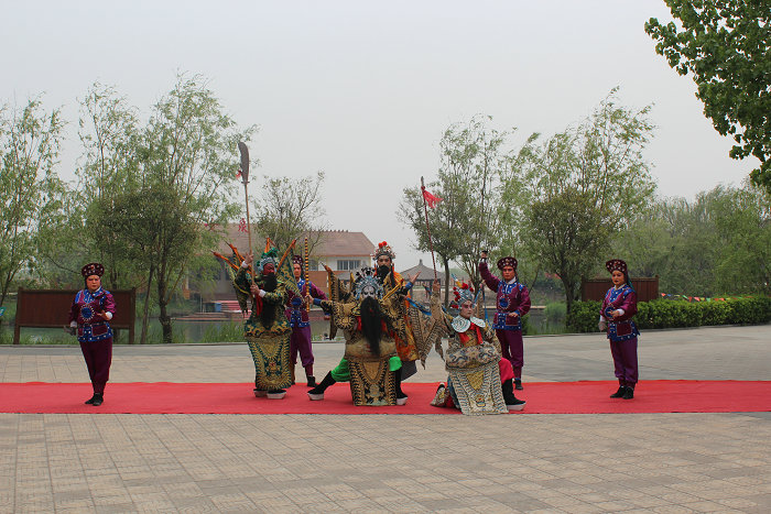 合阳跳戏,独存于合阳县沿黄河一带村庄,以新池镇行家庄最为有名。跳戏又称“调(tiao)调”或杂戏,它是伴随着狩猎、赛神、跳巫等民俗活动发展而成的。跳戏以锣鼓作为主伴奏乐器,以吟咏与民间舞蹈结合,来展示故事情节。跳戏分为哑跳和台跳两种形式,主要动作为“上势”。跳戏表演古朴、粗犷,剧目丰富,脸谱独特,曲牌别致,表演风格因衍生环境、民俗风情和传承人技艺的差异形成了不同流派。2005年文化部有关专家对合阳跳戏进行了考察,认为这一古老剧种对于研究我国戏曲史、舞蹈史及民间风俗有着很高的学术价值,誉为中国戏剧的“活化石”。合阳跳戏2008年被列入第二批国家级非物质文化遗产名录。