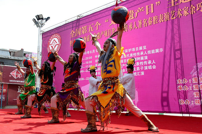 韩城秧歌俗称“对对戏”,是一种融民歌、说唱、舞蹈为一体,由曲艺向戏剧演化的原生态艺术表演形式,是研究中国戏曲发展的活化石。清人吴锡麟说,它是由宋代《村田乐》演化而来。秧歌演唱起初只用大锣、大镲和马锣等三件打击乐,20世纪40年代始加入了弦乐伴奏,增强了音乐效果。光绪二年(1876年),艺人韩敏卿带领秧歌班子进京,被慈禧太后招进宫中演出,从此韩城秧歌进入鼎盛时期。1929年前后,韩城秧歌风靡周边地区,秧歌班曾到延安、汉中和四川、宁夏等地演出。近年各级文艺工作者挖掘整理秧歌剧目近百折,韩城秧歌也多次参加重大比赛和交流演出。韩城秧歌2008年被列入第二批国家级非物质文化遗产名录。