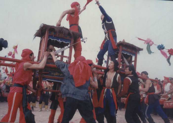 东庄神楼是韩城市西庄镇东庄村等地村民祭祀法王、求雨祈福的一项民俗活动,又叫“耍神楼”、“耍爷架”等。神楼是祭祀活动中用于抬神像的轿子,东庄神楼所抬神灵是西庄镇法王庙中供奉的法王,法王姓房名寅,是韩城历史上的名医,传说因为给宋真宗梦中治痈而被封为法王。西庄镇附近的八个村庄(八社)轮流供奉法王神楼,每年正月十五迎神于村,清明节送神还庙。迎送神楼时,火铳开道,村牌对联在前,道锣大号在后,锣鼓声中,赤面金身、横眉怒目、手持宝剑、脚踩毒蛇的法王神像端坐在神楼被众人簇拥着赫然出现。神楼周围吊有千百铜环,抬楼人手足戴有串串铜铃,抬手以统一的步履轻踏慢进,作和谐律动,铜铃、铜环铿锵作响,与锣鼓声相呼应。一旦锣鼓队敲起震天动地的祭祀锣鼓,神楼左摇右摆,铜环声扣人心弦,呐喊声震谷裂川。法王神楼前还有两个抬着“黑虎”“灵官”的小神楼,俗称“武神楼”,于东庄神楼舞动时前闯后拥,东庄神楼活动高潮时场面宏大,被誉为“社火之王”。东庄神楼2007年被列入第一批陕西省非物质文化遗产名录。