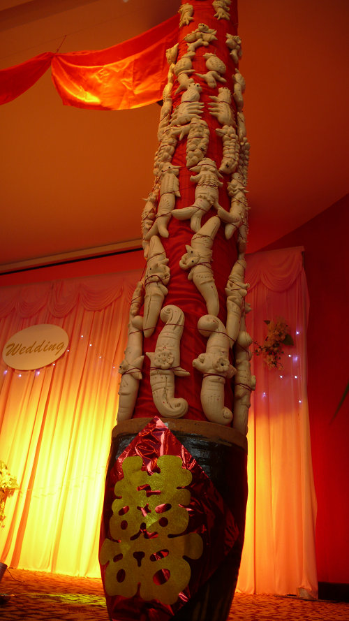 华州面花的代表作品有“谷卷”和“高馍盘”,都是大型的组合体。“谷卷”的形体是虎头,龙身,凤尾,远观似虎,近看变化无穷。“高馍盘”多用于婚礼喜庆场面,高丈余,重百斤,一般为七层。一层“水担”馍,喻百年良缘;二层蝙蝠,三层桃果,喻福寿双全;四层游鱼,五层莲花,喻夫妻恩爱;六层凤凰,七层牡丹,喻富贵如意;顶端多为“莲生贵子”或“龙凤呈祥”。华州面花2009年被列入第二批陕西省非物质文化遗产名录。