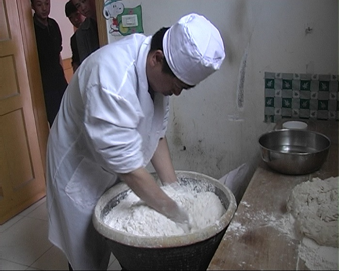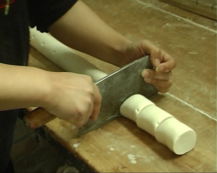 椽头蒸馍上圆、周方、底部齐槎,在制作过程中讲究“一水二面三酵四合五压六揉七蒸八起”,每道工序都有严格的要求和标准,否则就不能做出特有的色香味。水以县城内东槐院地下井水最佳,面以人工磨的面最为上乘,酵则采用自然酵母即老面发酵,菌种经过民间艺人多年选育,香气扑鼻,和面时根据季节天气来确定配比,全靠艺人经验掌握。压即先用大杠再用小杠反复压面,直至光滑。揉是将面团揉搓成长条,几经滚动做成圆形面柱,切成粗坯,再经手工捏制成型。蒸,先用大火使蒸汽快速上升,后用小火蒸熟。起笼时要求火不间断,保证气往上冲,避免馍塌陷蜷缩。椽头蒸馍色泽晶莹、麦香扑鼻、入口松软、回味无穷。蒲城椽头蒸馍制作技艺2009年被列入第二批陕西省非物质文化遗产名录。