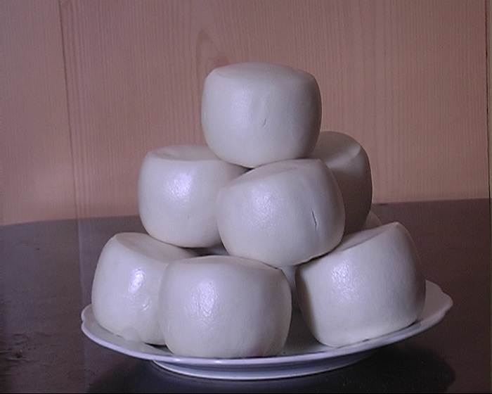椽头蒸馍是蒲城县的传统食品,因其状如椽头而得名。