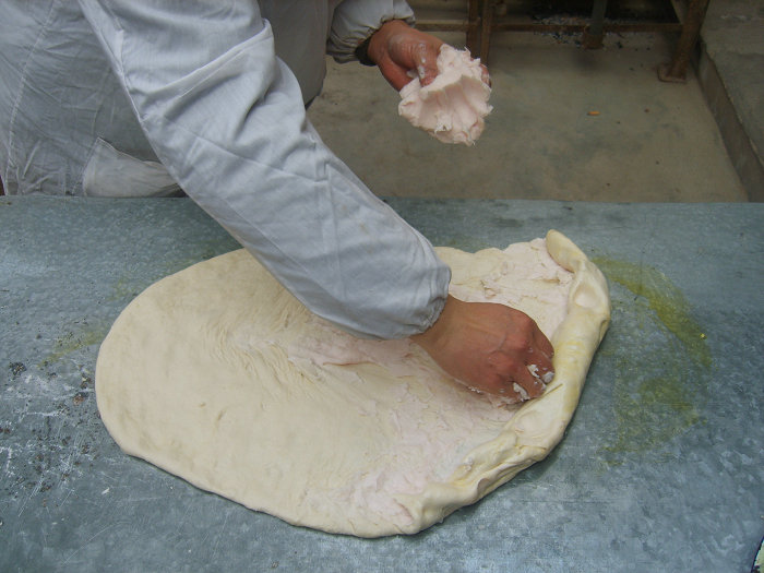 相传汉文帝刘恒在襁褓之时,其母薄太后的奶水不好,为了养育刘恒,薄太后煞费苦心地制作了一种叫做火曲的食品。后来薄太后带汉文帝到京畿之地的怀德县(今富平县华朱乡怀阳城)来散心,当地群众得知刘恒是火曲养大的,就仿效着给自家孩子做,果然好吃健胃。后来,当地人民为了纪念薄太后,把这种饼叫做太后饼。太后饼在民间传承了上千年,至清朝末年才开始见于文字记载,20世纪三十年代,王荆州在县城南关孟振汉父亲的杂货铺门前摆摊卖太后饼,将太后饼制作技艺传授给孟振汉,今天所看到的太后饼就出自这一谱系。太后饼制作的大致工艺是:(一)选用优质猪板油,撕去皮膜,撒入少许盐、桂皮面、大料面、花椒面,用刀背砸成油泥;(二)将上等白面和水成面团,擀成长方片,把油泥均匀地抹在上面,卷成圆圈,旋转制成圆饼;(三)将蜂蜜用开水化开,抹在圆饼上,用三扇鏊烤至金黄色即成。其形似塔,内质层次分明,柔软可口,油香不腻,“满口没牙都能吃,为群众所喜爱。近年成为了一些宾馆、酒楼、饭店的接待名点。富平太后饼制作技艺2009年被列入第二批陕西省非物质文化遗产名录。