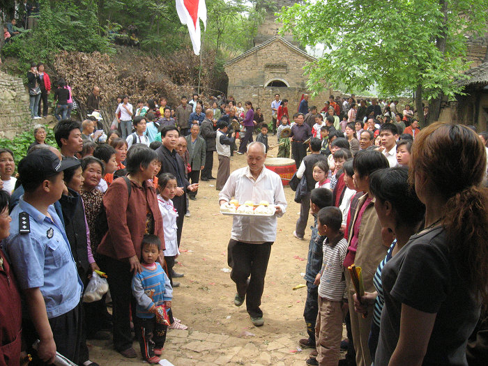蕴空山庙会又称蕴空禅院庙会,位于华县大明镇里峪口村境内。蕴空禅院,旧名“云寂寺”,建于汉代,因“悬棺”而负盛名。悬棺内所殓者为普乾禅师,是明代崇祯皇帝的四皇子,曾在华县举兵抗清,后因复国无望,在此出家,将云寂寺改名为蕴空禅院。圆寂后依其夙愿以“悬棺”葬之。当地人为纪念普乾禅师,在每年农历三月十七日禅师出家日到蕴空禅院上寺敬香,并相沿成习,形成了今天的蕴空山庙会。庙会参与者主要是附近村民,参加庙会演出的香会人员根据角色不同采取不同服饰妆扮:头陀(寓指皇子)身穿黄衣黄裤,武将身穿虎皮战裙,皇后、樵夫、卖药先生、渔婆、小二等不同角色各有其服饰。庙会现场击罄吟经,祭拜祈福,鼓炮齐鸣,热闹非凡。蕴空山庙会是华县及周边地区民间香会联合组织的活动空间,记录了明末清初华县的许多生活场景,具有重要的民俗活态史料价值。蕴空山庙会2009年被列入第二批陕西省非物质文化遗产名录。