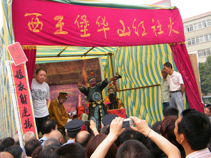 华山红社火又名血故事、血虎子,据说是元末明初时王姓家族迁徙于华阴,在当地祀神祭山活动中得到启发而开创的社火形式,至今有近800年历史,经世代传承,久演不衰。