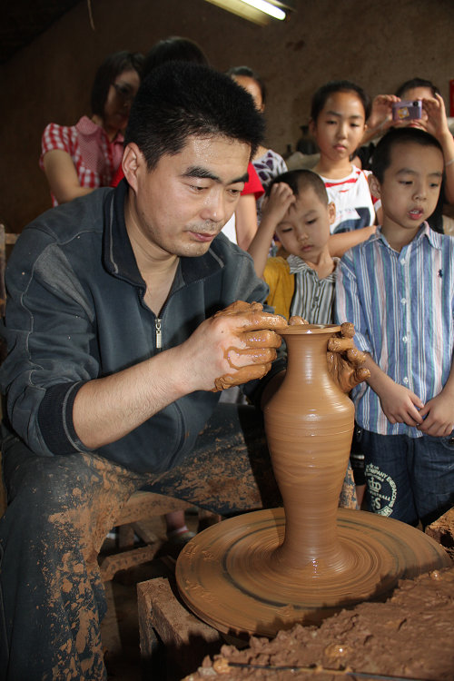 秦源影雕黑陶主要分布于临渭区及周边乡村,这里特种红黏土和绿胶泥储量丰富,适合黑陶制作。影雕黑陶经过选土、淋泥、揉泥、制坯、压花、镂空、阴干、烧制、清洗、包装等二十多道工序制作而成,工艺独特,特征鲜明:一是颜色黑亮,不借助任何材质的釉料,全凭陶土高温烧制过程中渗碳窑变而成;二是质地坚硬,陶土熟化程度好,烧好的成品即使薄如蛋壳,也硬度很高,敲击时发声清脆;三是造型丰富,有尖底瓶、罐、盆、熏炉、陶埙等多种造型,附带的提钮、把手、高足等形态各异;四是图案古朴,通过镂空、刻画等手法将鱼龙变化、百鸟朝凤等远古时期的图腾转化为富有韵律的抽象线条,赋予了黑陶浓厚的艺术魅力。使其深受国内外艺术家、游人喜爱。秦源影雕黑陶2013年被列入第四批陕西省非物质文化遗产名录。