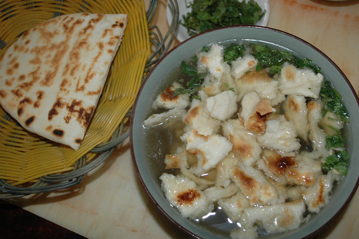 蒲城水盆羊肉是一种古老的饮食制作技艺,其中的清汤羊肉即秦汉典籍中常见的“羊羹”,月牙烧饼即东汉时期出现的“胡饼”。当地民间也有“先有秦家店,后有蒲城县”的说法,说明蒲城水盆羊肉至少已有1800多年历史。蒲城水盆羊肉制作颇具古风:将宰杀好的肥羊带骨斩成大块,放进水缸里浸泡,拔出肉中余血,使肉质松嫩。烹制羊羹时选用能容纳三五只羊的大锅,将大块生肉投入,加水淹过羊肉,放入调料包(秘方配置),文火烧煮六个小时后捞出,拆骨撕肉,撇净锅内浮油,原汤小火继续熬制,待浇汤食用。水盆羊肉吃法独特,将羊肉用手撕成细片状,入碗、浇入羹汤,配以月牙烧饼。另有生蒜、香菜、辣椒供食客选择。正宗蒲城水盆羊肉,肉嫩烂而鲜,汤浓郁而淳,具有药膳滋补之功效。蒲城水盆羊肉制作技艺2013年被列入第四批陕西省非物质文化遗产名录。