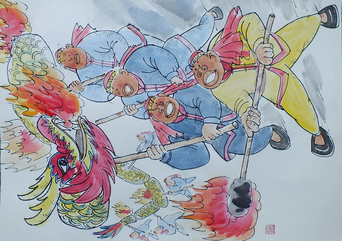 火龙是大荔县下寨乡赵家村等地一种庆祝丰收并祈祷来年风调雨顺的祭祀活动。相传起源于明末清初时期,每年农历正月十五至二月二龙抬头的日子,都有舞龙习俗。火龙的骨架都由竹子剖片绑扎而成,包括头尾共有12节,寓指一年12个月(逢农历闰年则多1节),每节都安上一个木制龙拐,演出时手持龙拐,相互配合就可以做出俯冲、盘旋、仰飞、巡游等栩栩如生的动作。龙身内部有用棉布卷成捻子、沾上蓖麻油点燃的灯烛,看上去火光闪耀,活灵活现。此项活动属于社火的一种,常与其它民间艺术活动结合进行,具有极强的共通性与溶合性,其蕴含的舞蹈元素和烟火技艺,具有重要的传承价值。火龙2008年被列入第一批渭南市非物质文化遗产名录。