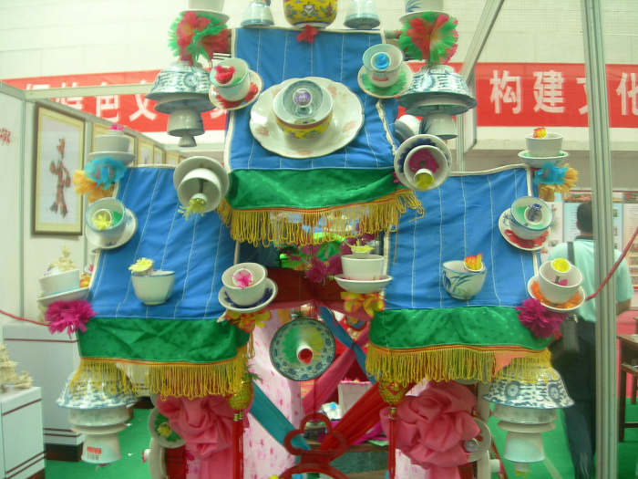 青瓷船是大荔县两宜镇丰润村的一种社火表演用的旱船。其设计制造相传是由一个喜欢唱戏的铁匠所创。船体全长约二至三米,宽一米,以五分见方的松木板条组合成船架,前列牌楼,后有船舵,舵中设架位,牌楼立顶梁,分别在四个挑角倒吊茶碗、酒杯组成的瓷铃,中悬小件粘合的瓷绣球,下为花丛,丛中装置四个大瓷碟,全船装有大小瓷件约一百五十余个。表演时随着锣鼓的节奏,驾船姑娘做出行进、急驱、破浪、顶风、闯急流、出旋涡等各种舞姿,船上的镜面与花灯相映,百余件青瓷相互撞击,发出清脆悦耳、别有风味的瓷器音响,演唱时常用秧歌词,如“绣荷包”等,鼓点不同,唱法各异。青瓷船的装置技术要点,一是船体布局要保持平衡;二是挑选瓷件,讲究音响与质地组合巧妙;三是瓷件粘接技术有秘诀,采用自制的胶水粘合,非常结实。陕西电视台曾数次播出青瓷船表演,船体还曾赴京展出。青瓷船制作技艺2008年被列入第一批渭南市非物质文化遗产名录。