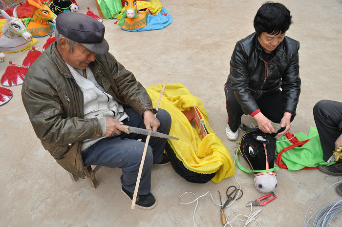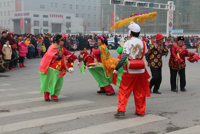 跑汗马是流传于临渭区的民间社火表演艺术,一般在逢年过节时演出。“汗马”由铁丝、彩纸、纱布、竹子等糊贴定制而成。汗马队一般由5-10人组成,马夫居前,汗马队居中,马婆子殿后。马夫头裹花毛巾,腰系彩绸腰带,手持马鞭,嘴噙口哨,是马队的引路人。汗马队由马夫的哨音统一步调,变化套路,要求步伐统一,轻便灵活。马婆子是男扮女装的丑角,戴大鲜花,垂大耳环,忸怩作态,摇芭蕉扇,令人捧腹。跑汗马通常和舞狮、秧歌配合表演,组成声势浩大的社火队伍,场面十分壮观。渭南跑汗马2010年被列入第二批渭南市非物质文化遗产名录。