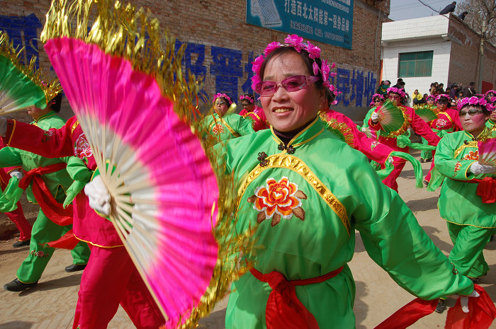 西阳秧歌流传于大荔县官池镇及洛河以南一带。官池地处沙苑腹地,从西魏到明清,先后聚集了不同民族和不同地区的移民,西阳秧歌是民族大融合过程中的民俗产物,于每年正月十五打社火时举行,至今不衰。秧歌队一般每组30人,四组共计120人左右,舞蹈者皆为女性,另有两位男性口吹哨子负责指挥。表演者身着各色民族服装,一手执扇、一手拈花。挑挑担、迎风摆、纺线线为主要动作,穿插变幻以蛇过套、转牡丹、喜相逢、转十字、扭八字等多种套路。舞蹈时两人一组,且行且舞,动作夸张,富有幽默感。演到欢畅处,队列相互穿插,令人眼花缭乱。西阳秧歌集多种民族舞蹈于一身,又根据当地文化和自然环境形成了不同于一般秧歌的表演形式,具有独特的历史文化价值。西阳秧歌2010年被列入第二批渭南市非物质文化遗产名录。