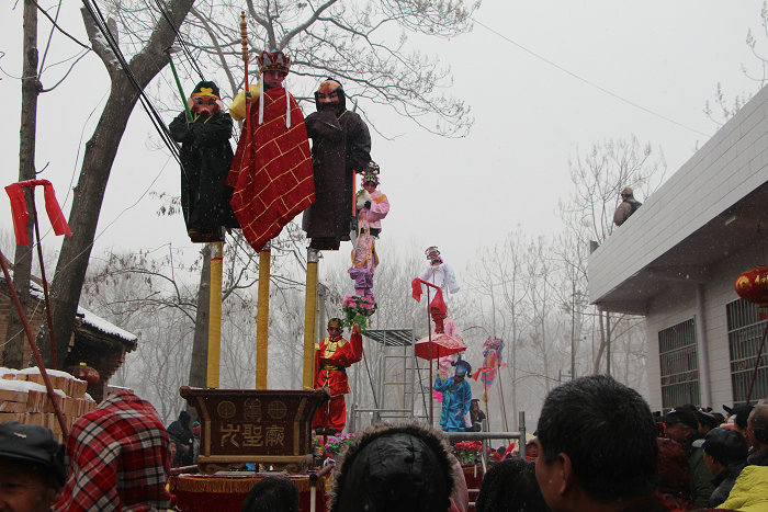 小涨芯子主要活动于华县辛庄乡小涨村一带,乃明清时自山东淄博市号称天下第一村的“周村芯子”流传而来,分为单人芯子、双人芯子和多人芯子三种。芯子的主杆、支架有木制和铁制两种,通过铆接或焊接而成。底座为木质桌床,桌面中间有一个方孔,用于固定芯子主杆,主杆底部垂以磨盘,以增加平衡。在妆扮戏剧人物时,除小孩面部外,身躯、足、臀部位都用服装和道具作好伪装。芯子周围按剧情需要装饰成亭台楼阁、花卉祥云等,给人以身临其境之感。小涨芯子扮演的主要内容是带有浓重地方色彩的神话故事和传统剧目,对研究当地生活生产及民俗风情有一定价值。小涨芯子2010年被列入第二批渭南市非物质文化遗产名录。