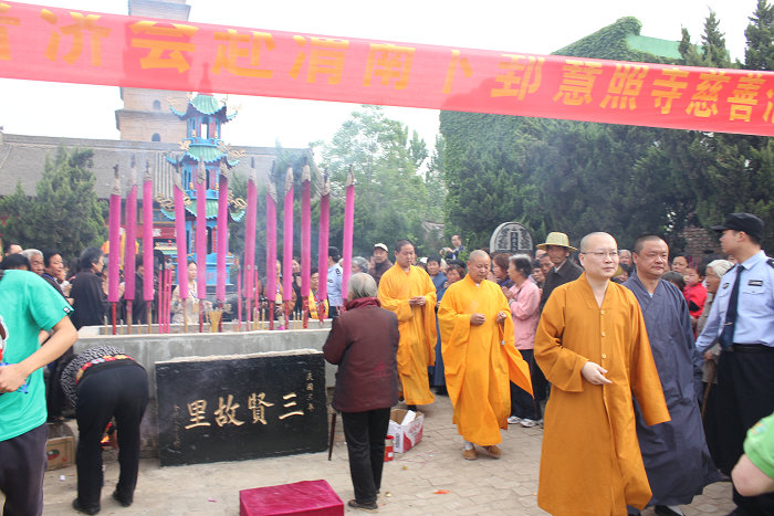临渭区下吉镇寺院林立,庙会众多,其中规模最大的,首推慧照寺。慧照寺又名铜佛寺,始建于晋,历代都有增修。寺内有塔,相传是北宋名相寇准施银资助。慧照寺的庙会主要于每年农历四月初八的浴佛节举行,庙会内容丰富,仅从浴佛来说就分为四个部分:一、僧人巡游。俗家信众手持黄幡,在山门到大殿的道路两侧站立整齐。主持法会的寺院住持及护卫僧尼从中走过。住持合十对众人点头还礼。二、敬香。住持带领众人在五尊铜佛前行五体投地的佛家大礼,并上香。三、请佛。住持手捧释迦牟尼金像,缓步走向祭坛。祭坛由各色鲜花围绕而成,中间是贮满清水的铜盆。四、浴佛。将佛祖金像立在铜盆内,用勺子舀起清水,轻轻洗浴佛祖,有人从旁边抛洒花瓣,以示用鲜花供养。除浴佛、拜佛外,庙会上还有农产品交易、杂耍等活动。下吉庙会既是人们传递宗教信仰的载体,也是当地人们怀念寇准等乡贤的一种特殊方式,具有一定的保护价值。下吉古庙会2010年被列入第二批渭南市非物质文化遗产名录。