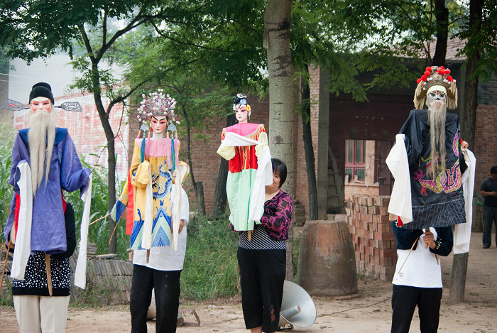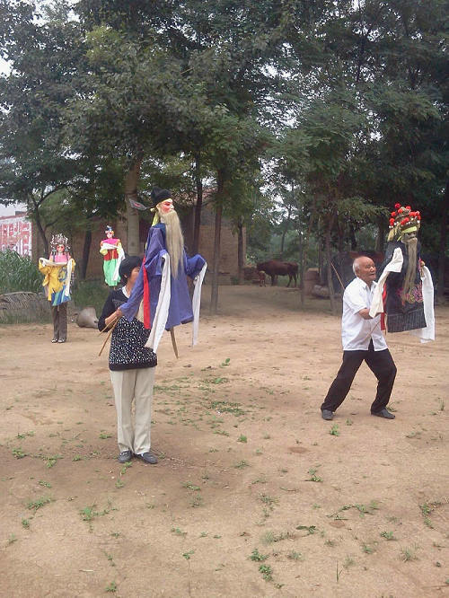 白水肘猴儿戏,即肘木偶戏,是一种由艺人在木偶戏服长摆下操作表演,并配以秦腔等声腔演唱的传统戏剧。相传于明代末年随李自成起义军流入白水县杜康镇张王庄村,盛于清嘉庆年间。1949年曾为驻扎在仓颉庙内的彭德怀所率西北野战军表演。肘木偶的偶头由核桃木雕刻而成,在脖颈下方和袖子里各装一根竹竿,分别称为“头杆”和“手杆”,沿着“头杆”有一根细线,拉动时可以让木偶眼球翻动。木偶脸谱程式化,戴上胡子是老生,卸下胡子是小生。偶头戴帽、偶身穿衣,可以根据剧情随时更换。舞台左右两侧用红色布幔掩罩,台后设有遮盖操纵者的帷幕。白水肘猴儿戏深受群众喜爱,当地民间素有“要看戏、到张王”和“不看猴儿戏,三天饭不香”的说法。白水肘猴儿戏2013年被列入第三批渭南市非物质文化遗产名录。