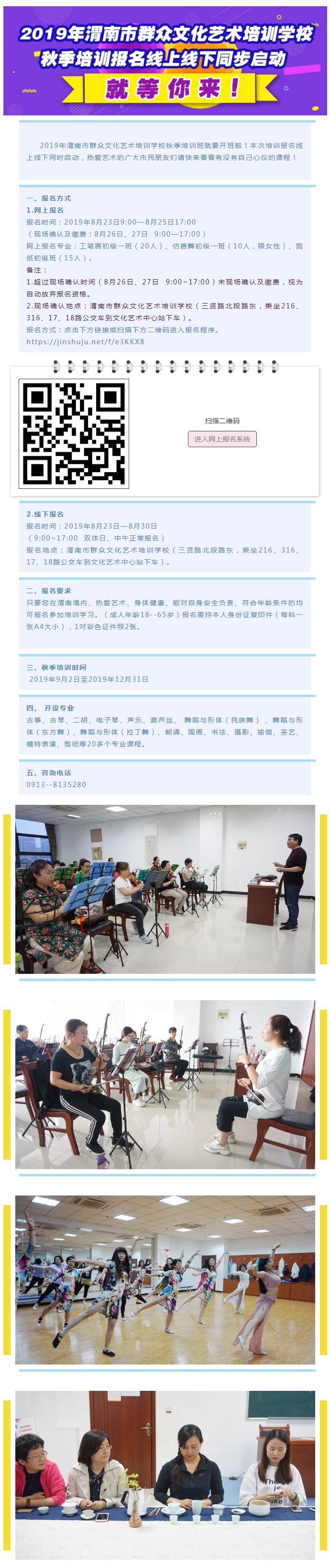 2019年渭南市群众文化艺术培训学校秋季培训报名线上线下同步启动,就等你来!