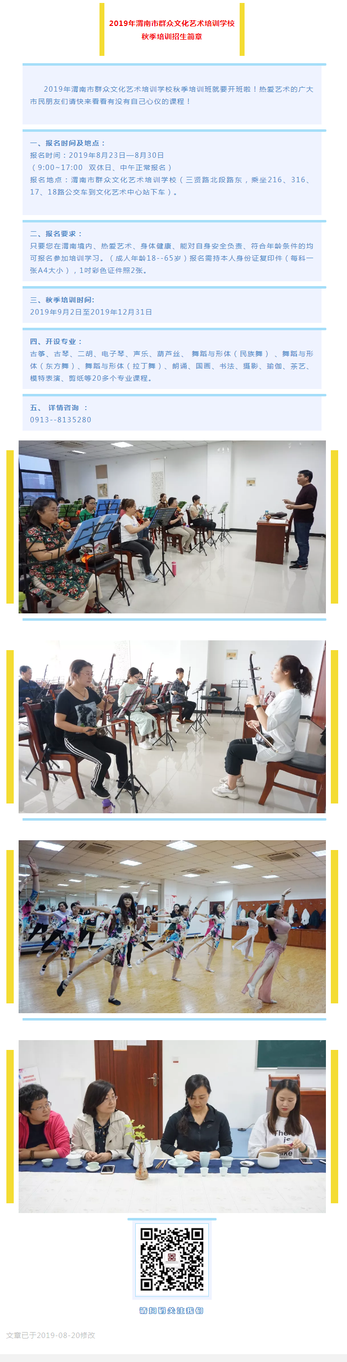 2019年渭南市群众文化艺术培训学校 秋季培训招生简章