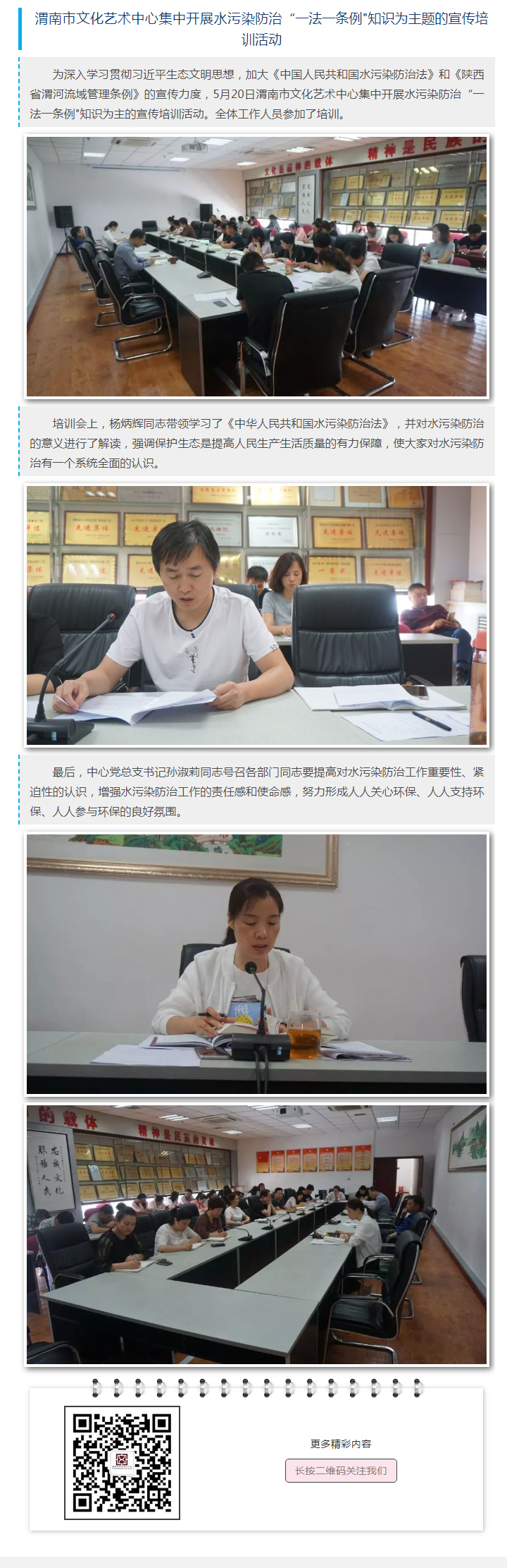 渭南市文化艺术中心集中开展水污染防治“一法一条例知识为主题的宣传培训活动