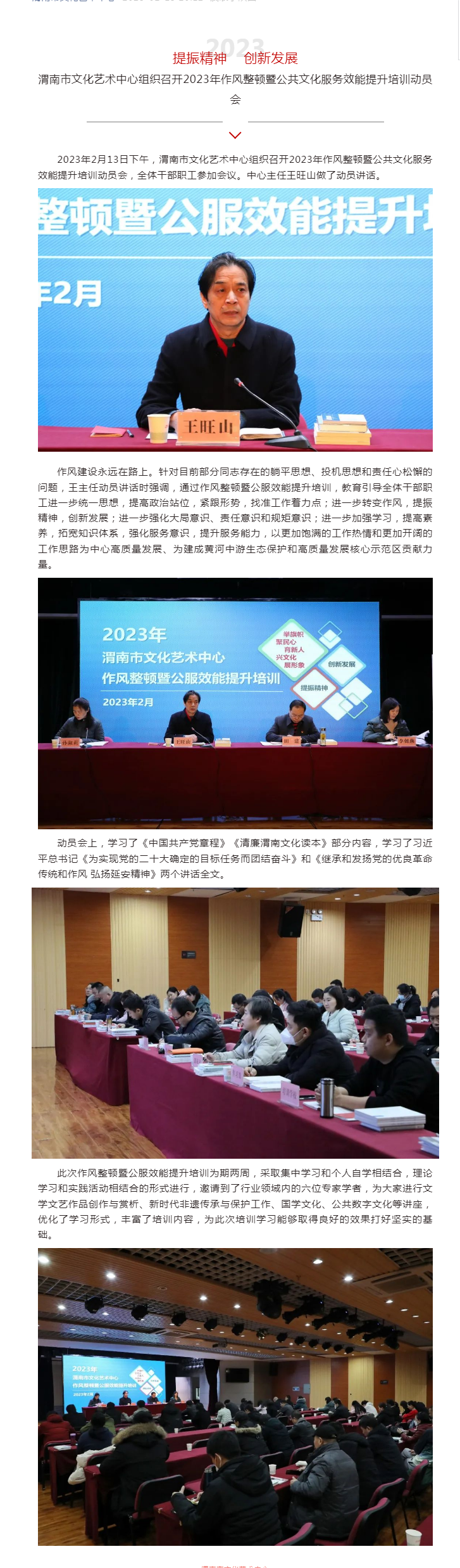 提振精神 创新发展 渭南市文化艺术中心组织召开2023年作风整顿暨公共文化服务效能提升培训动员会