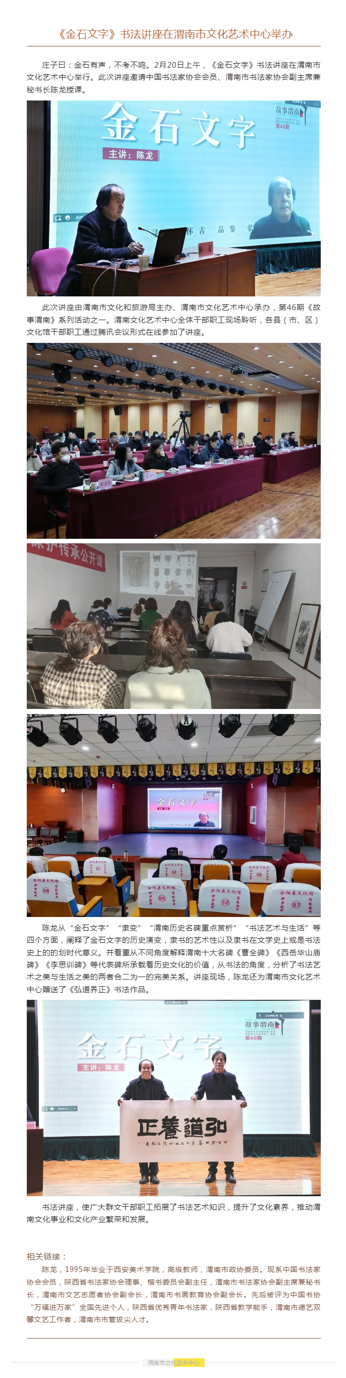 《金石文字》书法讲座在渭南市文化艺术中心举办