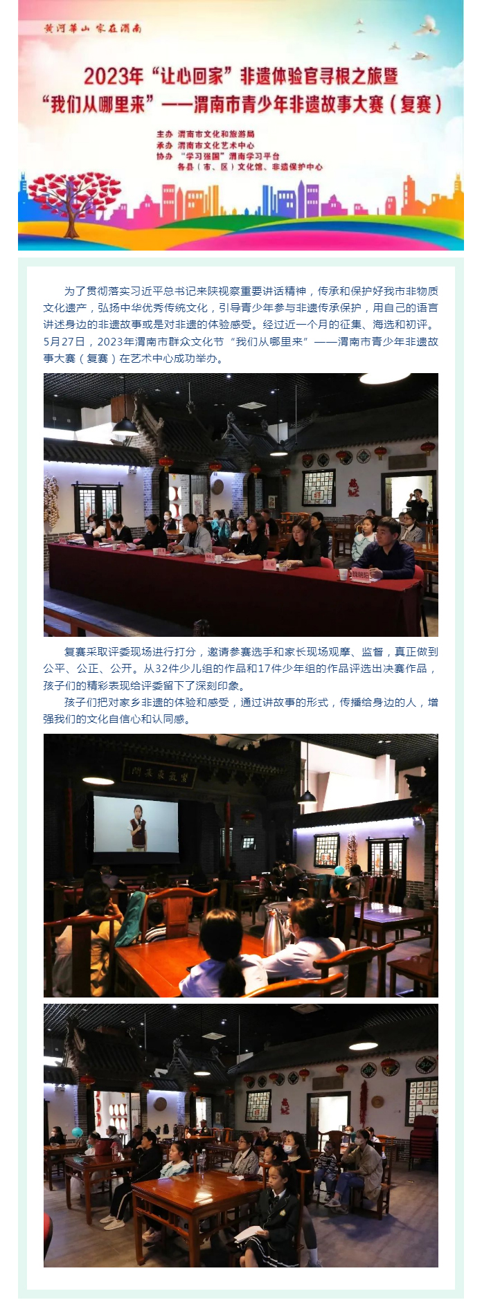 2023年渭南市群众文化节“我们从哪里来”——渭南市青少年非遗故事大赛(复赛)在艺术中心成功举办