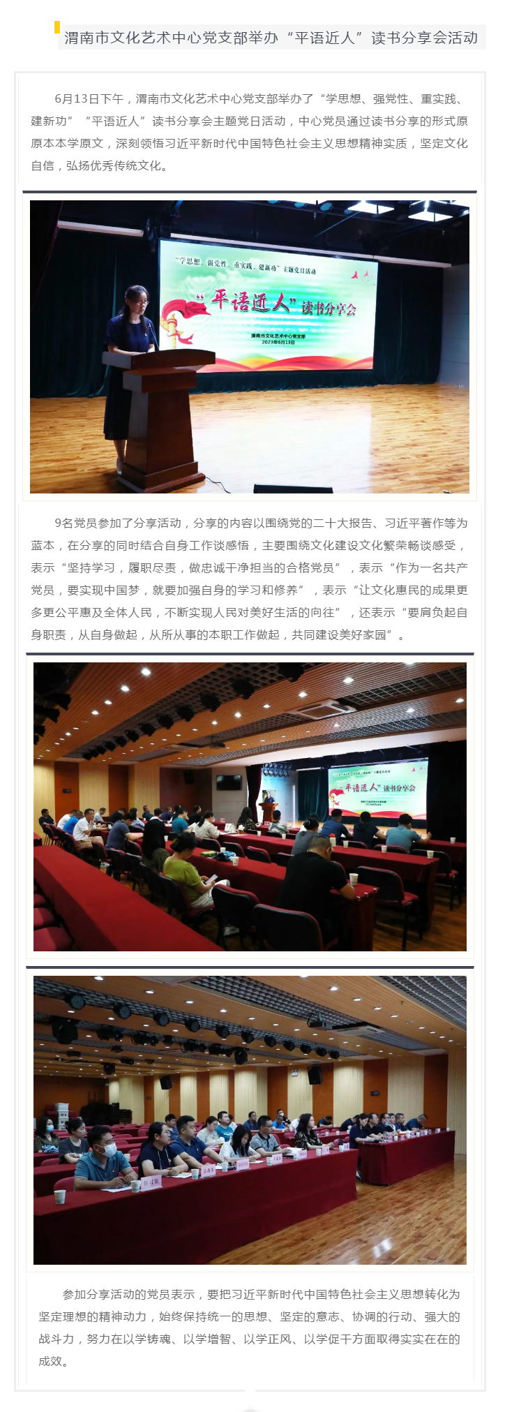 渭南市文化艺术中心党支部举办“平语近人”读书分享会活动