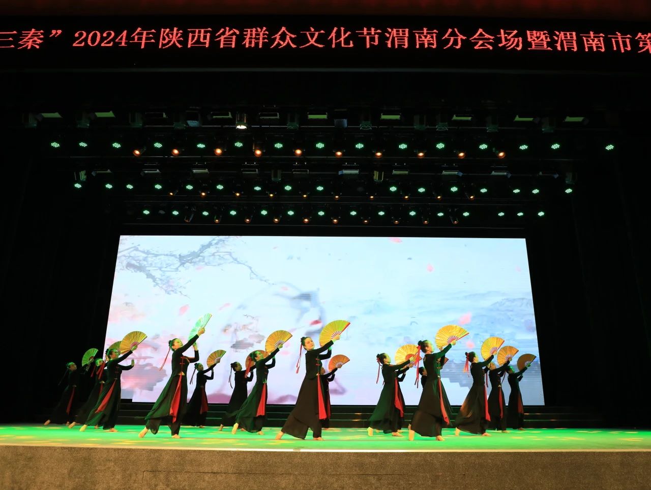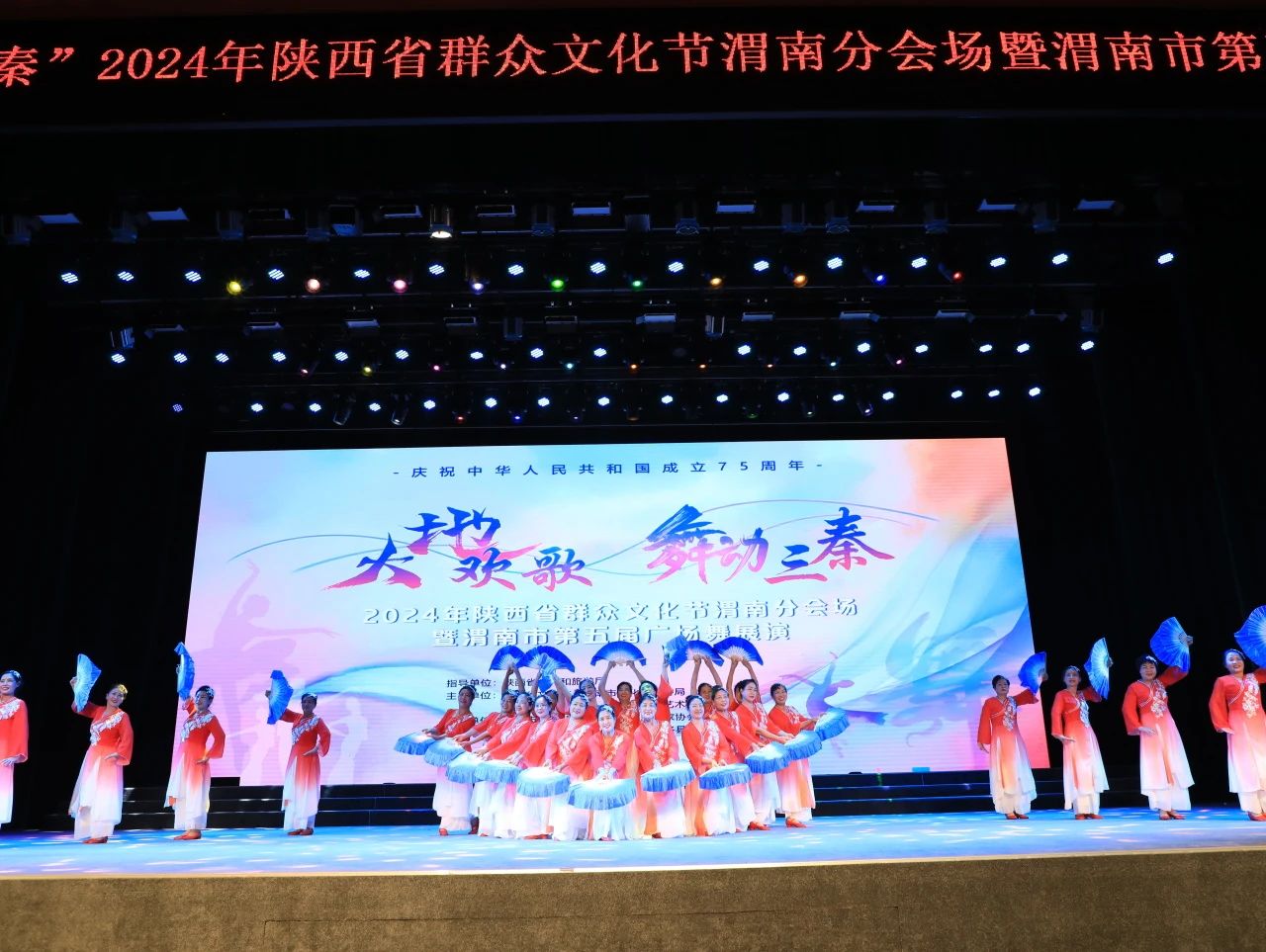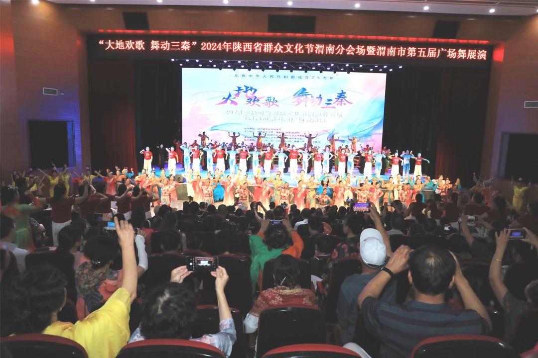 翩翩舞姿展风采,大美渭南绽芳华。为庆祝中华人民共和国成立75周年,大力营造爱国奉献、团结奋进的浓厚社会氛围,7月30日下午,“大地欢歌 舞动三秦”2024年陕西省群众文化节渭南分会场暨渭南市第五届广场舞展演在渭南市文化艺术中心隆重举行。本次广场舞展演活动由陕西省文化和旅游厅指导,陕西省文化馆、渭南市文化和旅游局、渭南市妇女联合会、渭南市文学艺术界联合会主办,渭南市群众艺术馆、渭南市舞蹈家协会承办,各县(市、区)文化和旅游局、文化馆协办,来自渭南各县(市、区)的12支参赛队伍齐聚一堂,用优美动人的舞姿和极富感染力的笑容,为现场观众献上了精彩纷呈的广场舞“大餐”。