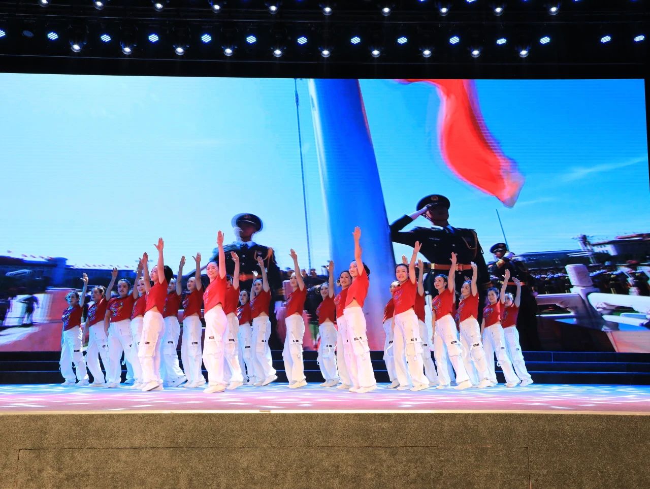展演活动在《感到幸福你就拍拍手》音乐声中拉开帷幕,舞台上下的演员们身着演出盛装,与现场500余名观众和着音乐,用真诚的歌声和热情表达对伟大祖国的热爱与美好祝福,尽情抒发着心中的骄傲与自豪。