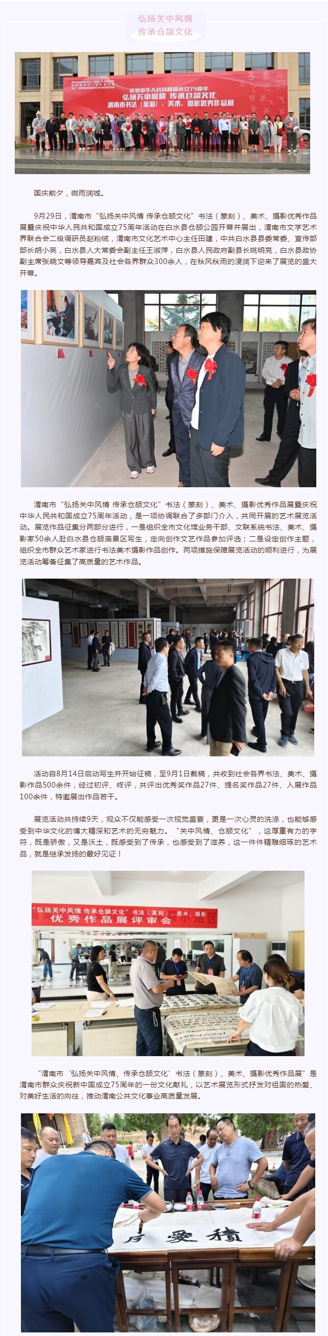 渭南市“弘扬关中风情 传承仓颉文化”书法(篆刻)、美术、摄影优秀作品展暨庆祝中华人民共和国成立75周年活动在渭南市白水县举办