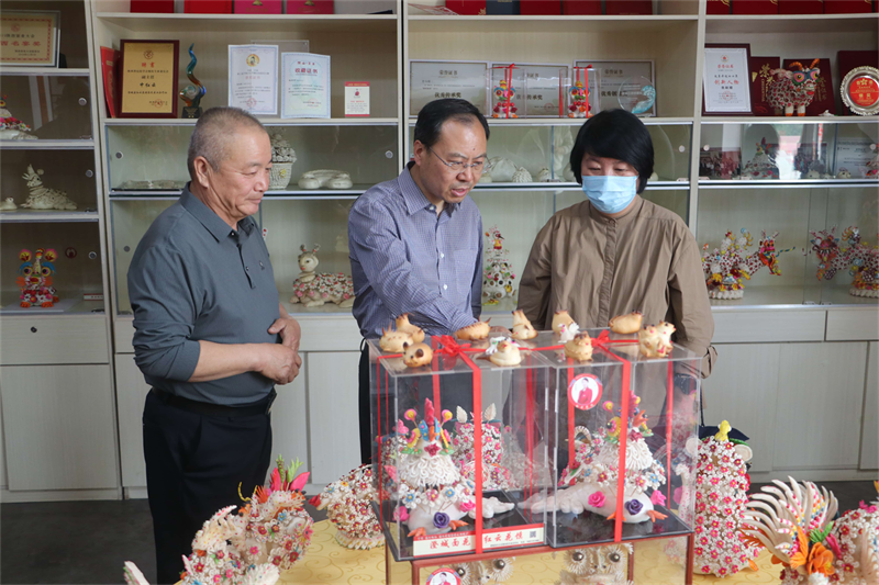 调研组走进渭南市非遗展示传习馆,沉浸式感受皮影、面花、戏曲等非遗技艺的文化底蕴。随后,调研组实地走访临渭草编巧娘合作社,观摩指尖翻飞间麦秆化作精美工艺品的神奇;踏入澄城尧头窑非遗生态区,在千年古窑遗址中触摸陶瓷烧制技艺的历史脉络;走进澄城红云花馍合作社,聆听传承人讲述面花艺术的民俗故事。在甘井镇文化馆,调研组深度考察基层文化活动开展和非遗保护实践等成果。在庄严肃穆的司马迁祠中,探寻文史之乡的文化基因与文脉传承的深层关联。