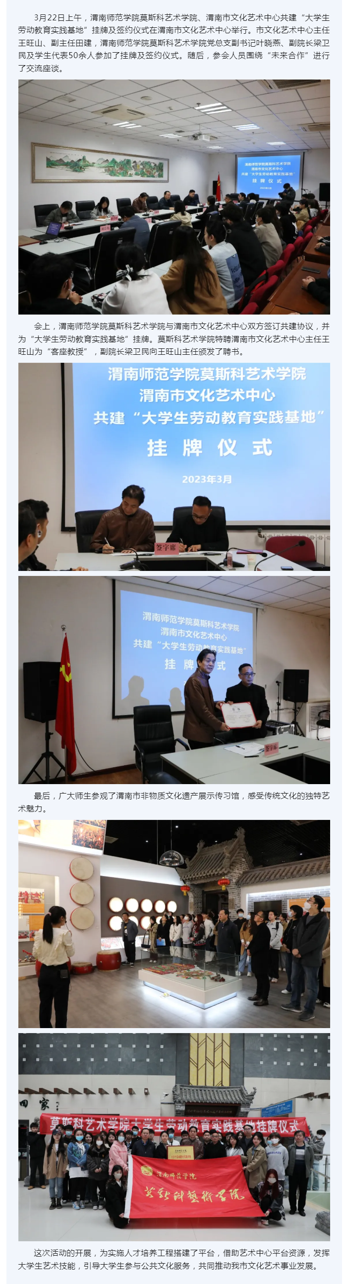共建“大学生劳动教育实践基地”挂牌、签约仪式在渭南市文化艺术中心举行