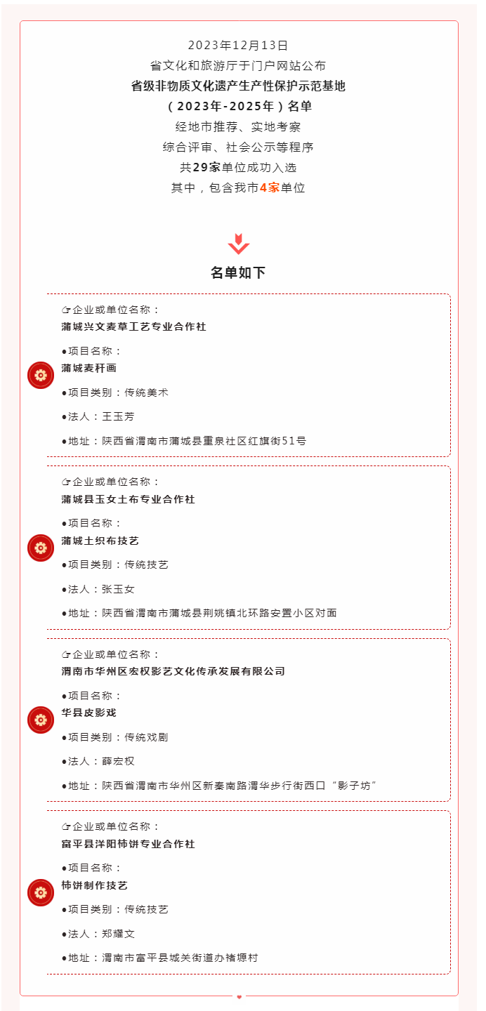 优秀!渭南4家单位获评省级非物质文化遗产生产性保护示范基地