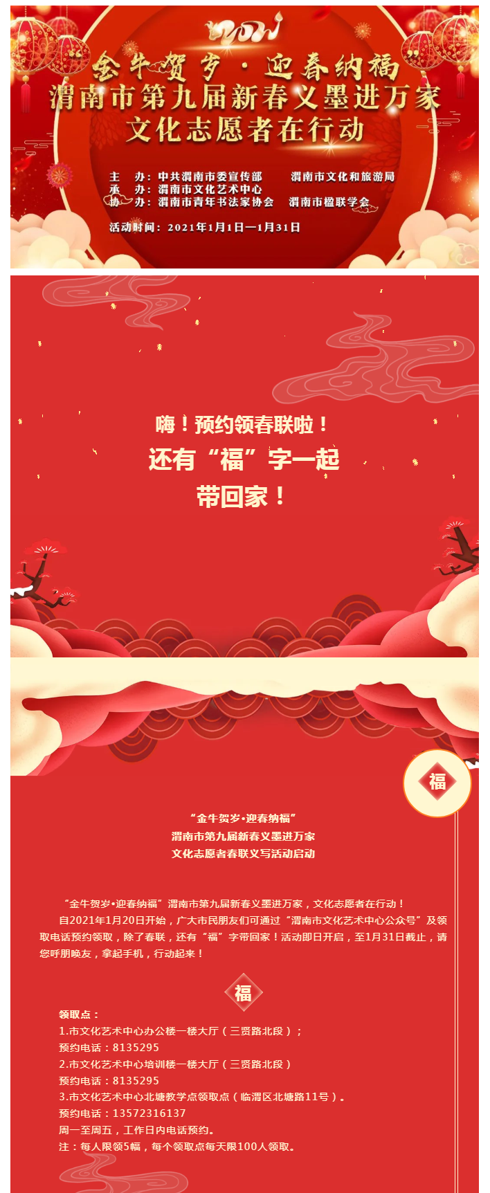 嗨!预约领春联啦! 还有“福”字一起带回家!