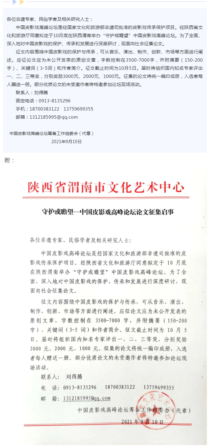 守护或瞻望—中国皮影戏高峰论坛论文征集启事