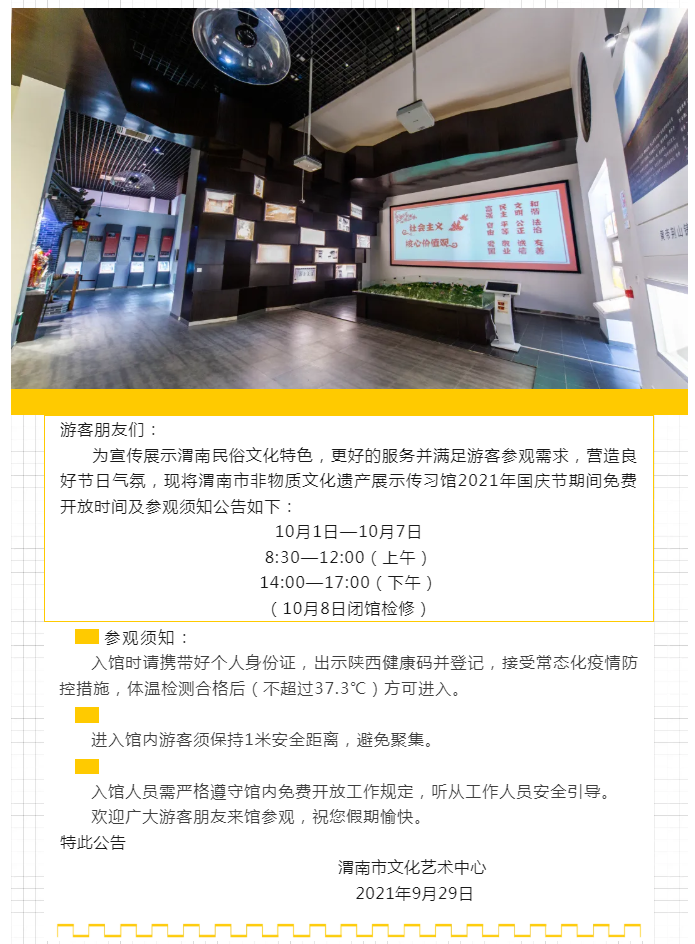 渭南市文化艺术中心非物质文化遗产展示传习馆国庆期间免费开放公告
