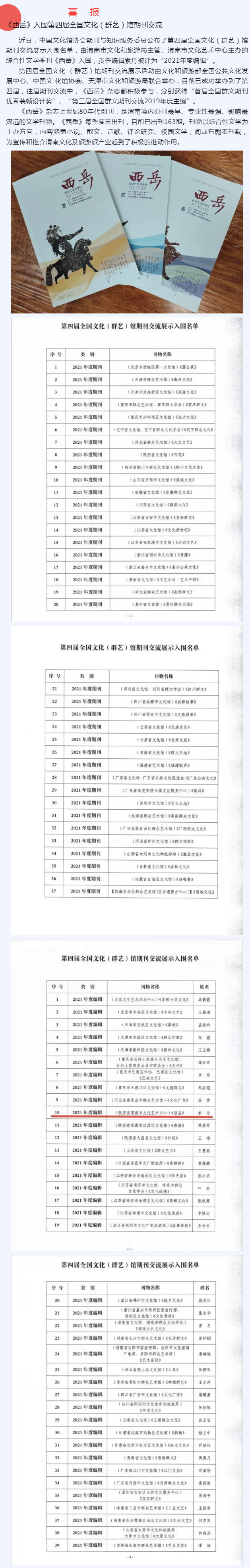 喜报——《西岳》入围第四届全国文化(群艺)馆期刊交流