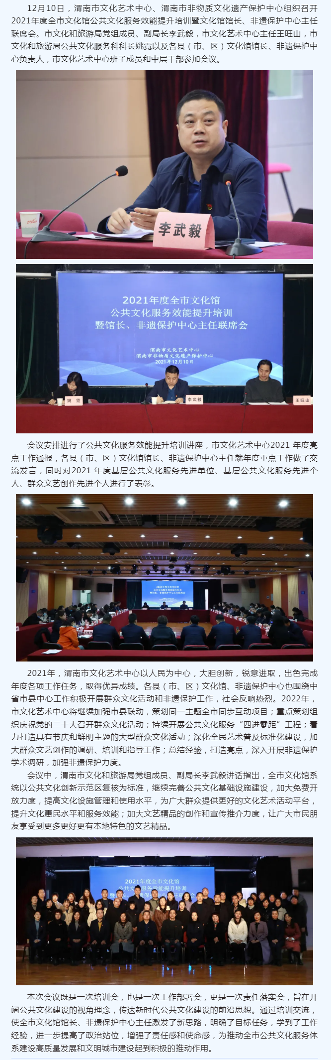 2021年度全市文化馆公共文化服务效能提升培训暨馆长、非遗保护中心主任联席会召开