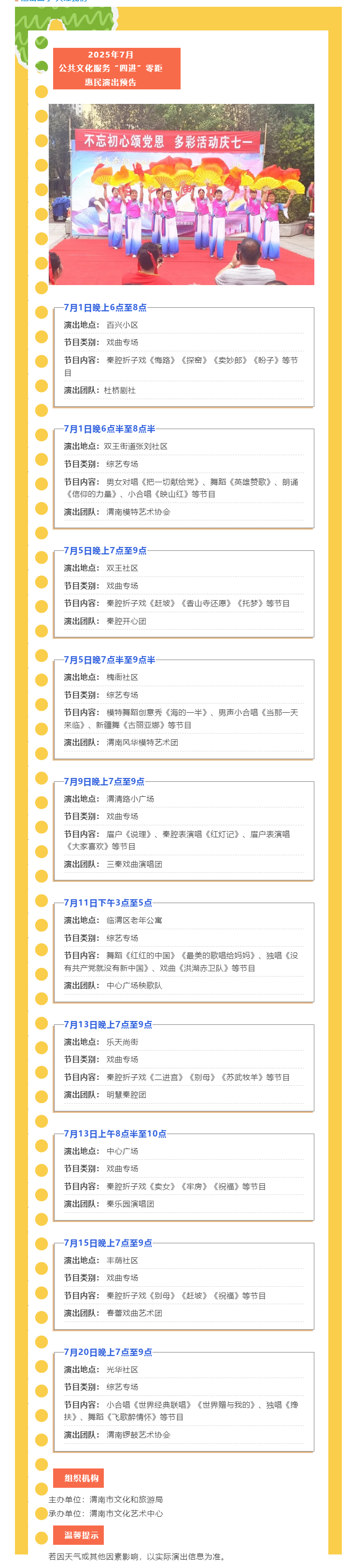 【活动预告】2025年7月公共文化服务“四进”零距惠民演出预告