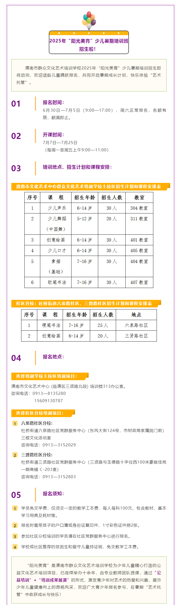 2025年“阳光美育”少儿暑期培训班招生啦——快乐体验“艺术托管”