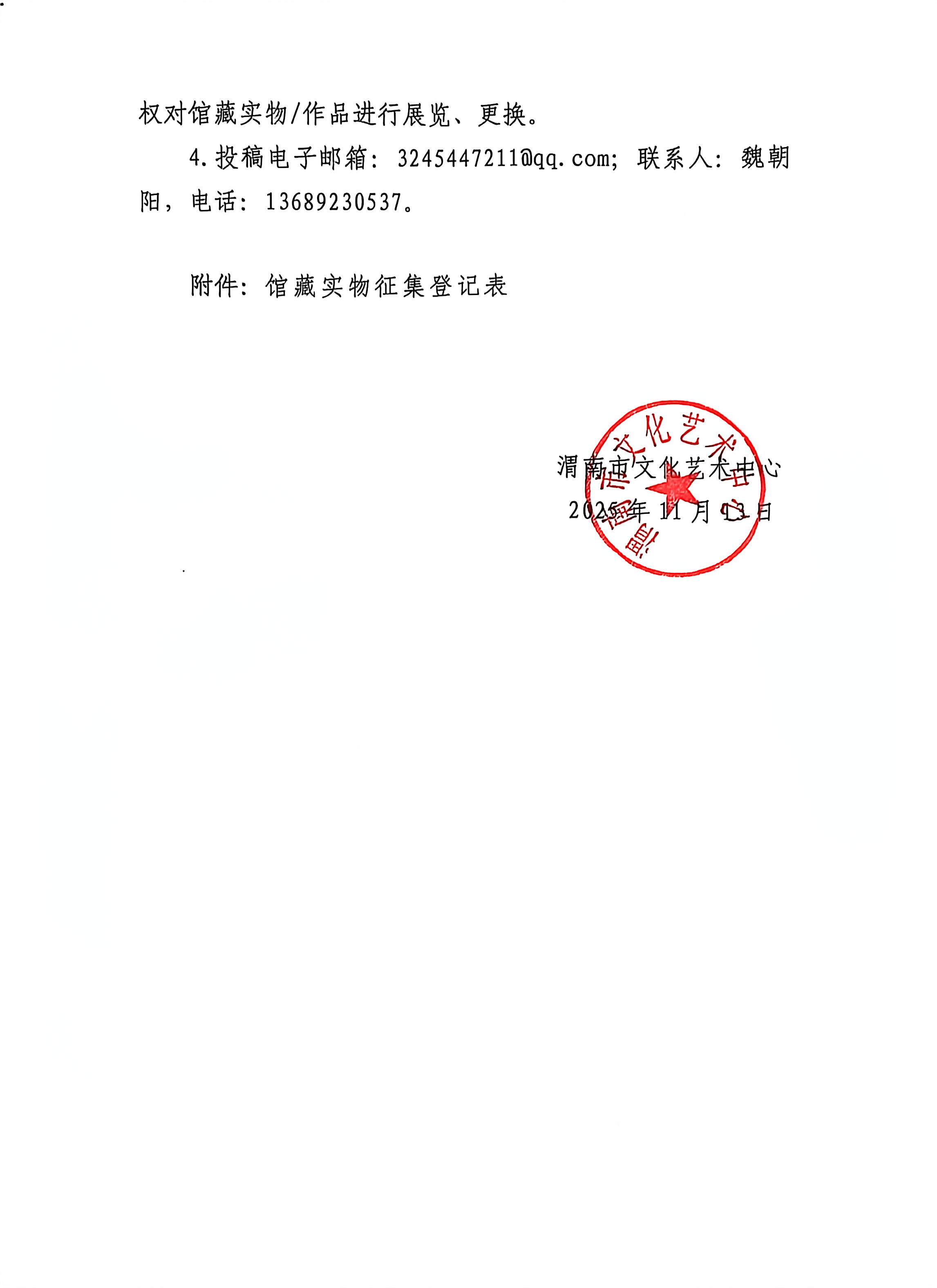渭南市文化艺术中心馆藏实物征集启事