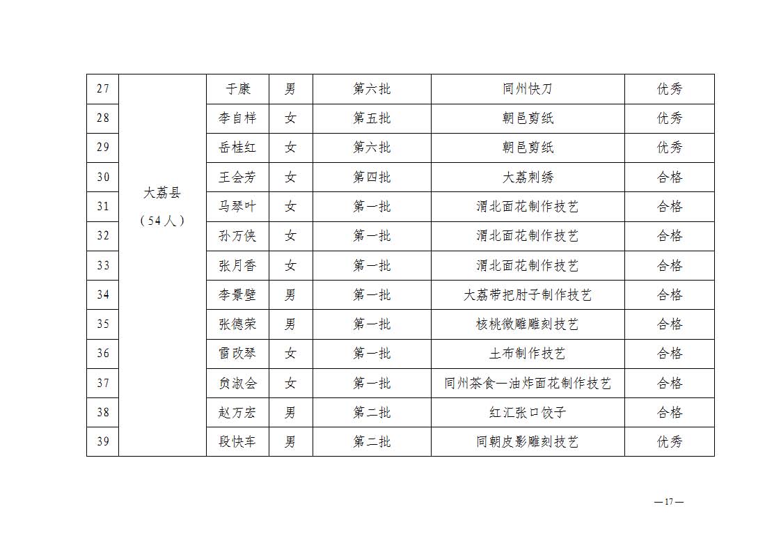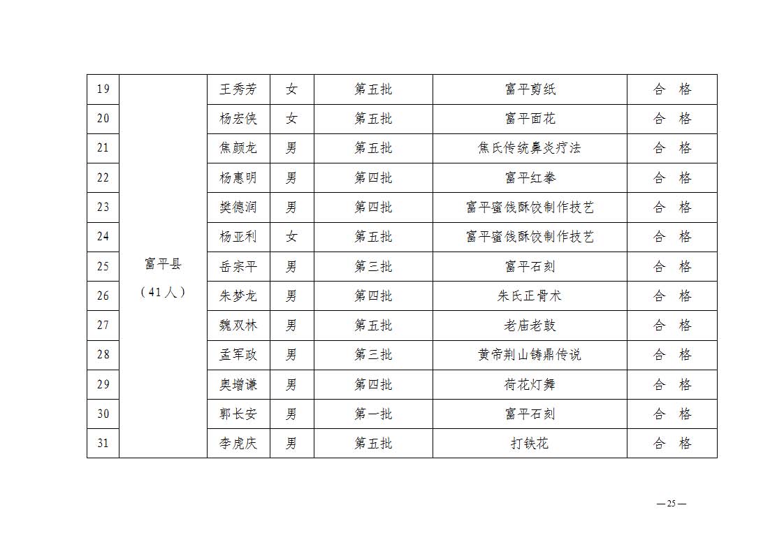 1.渭南市2025年度代表性传承人考核合格汇总表