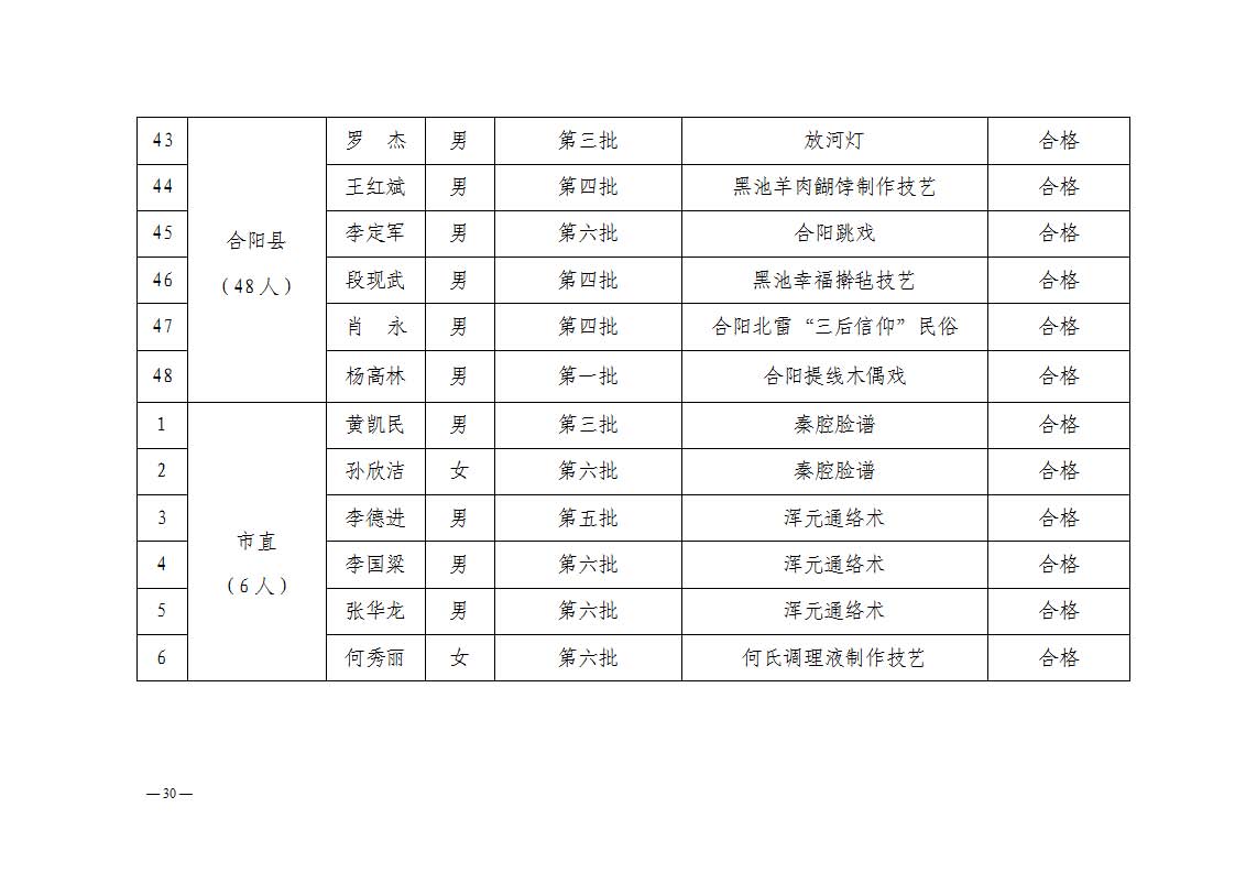 根据《关于开展2025年市级非物质文化遗产项目代表性传承人年度考核的通知》(渭文中心发[44]号)要求,渭南市文化艺术中心于2025年9月启动市级传承人年度考核工作,经资料审核、会议研究,已于11月完成全部考核流程,现将结果公示如下: