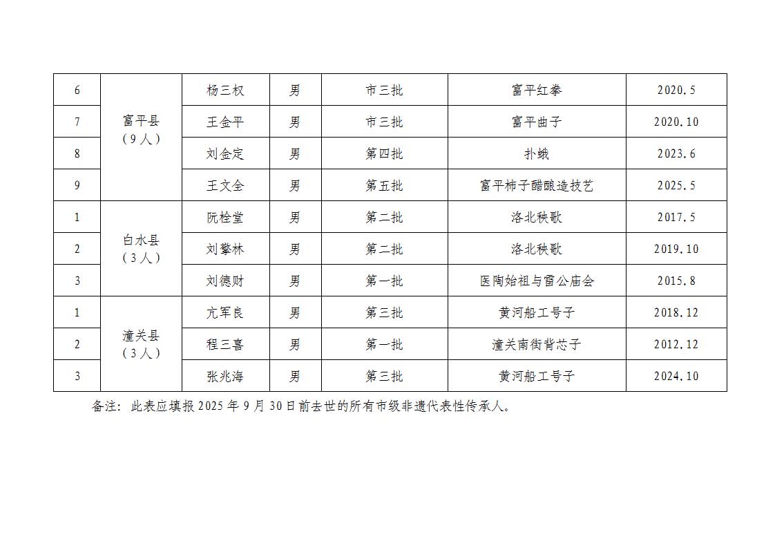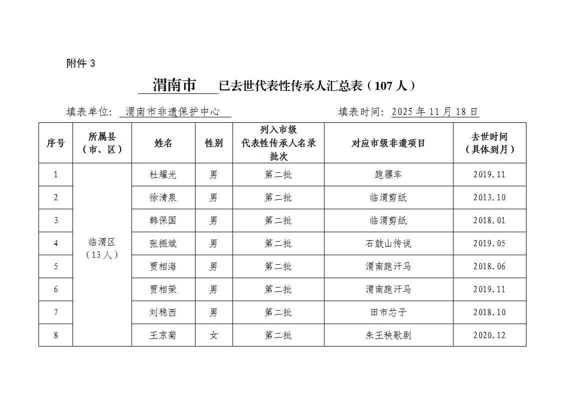 3.渭南市2025年度代表性传承人去世汇总表