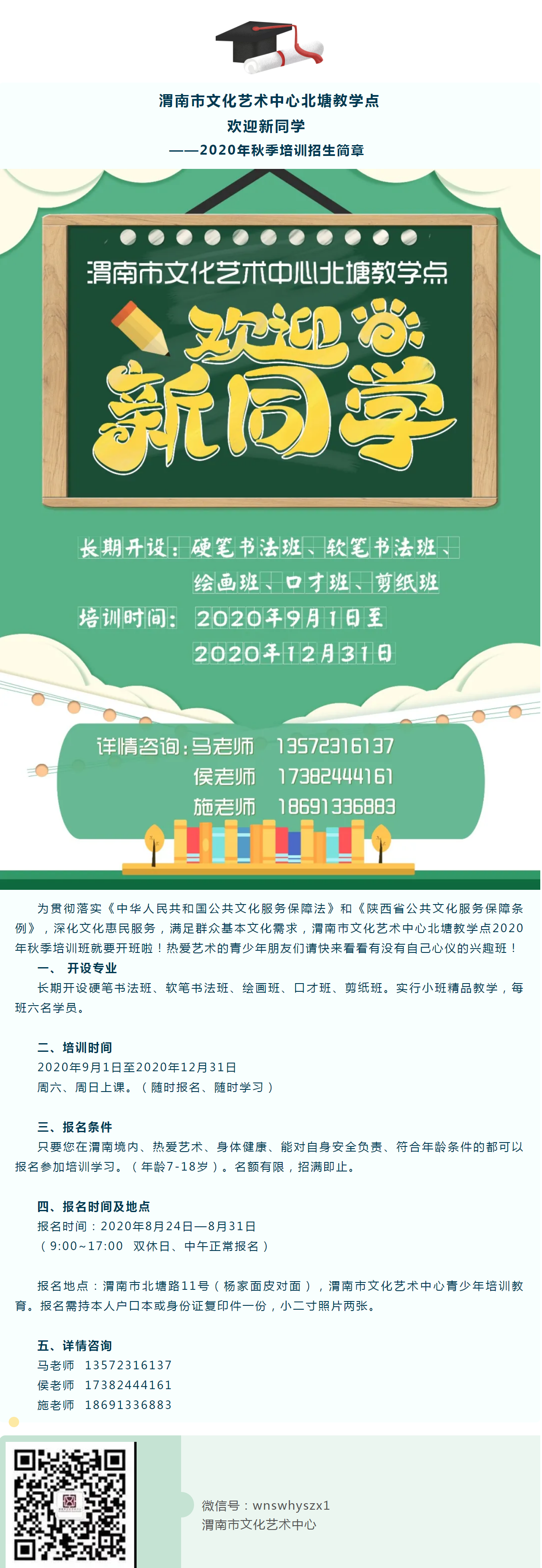 渭南市文化艺术中心北塘教学点欢迎新同学 ——2020年秋季培训招生简章