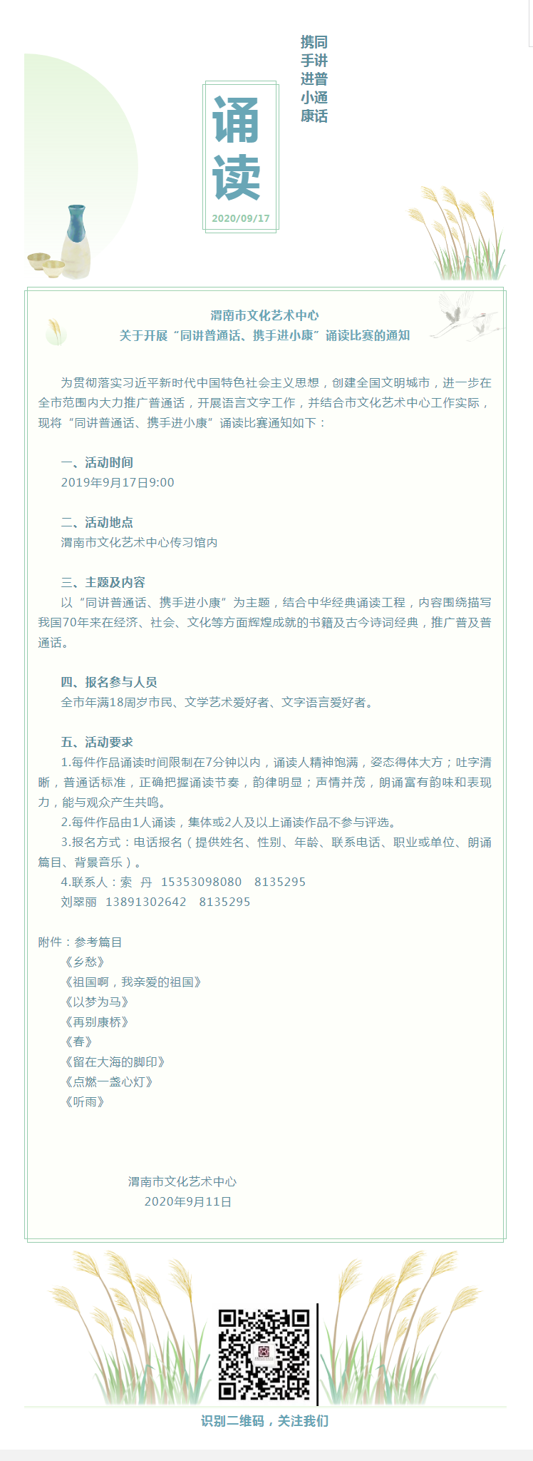 渭南市文化艺术中心 关于开展“同讲普通话、携手进小康”诵读比赛的通知