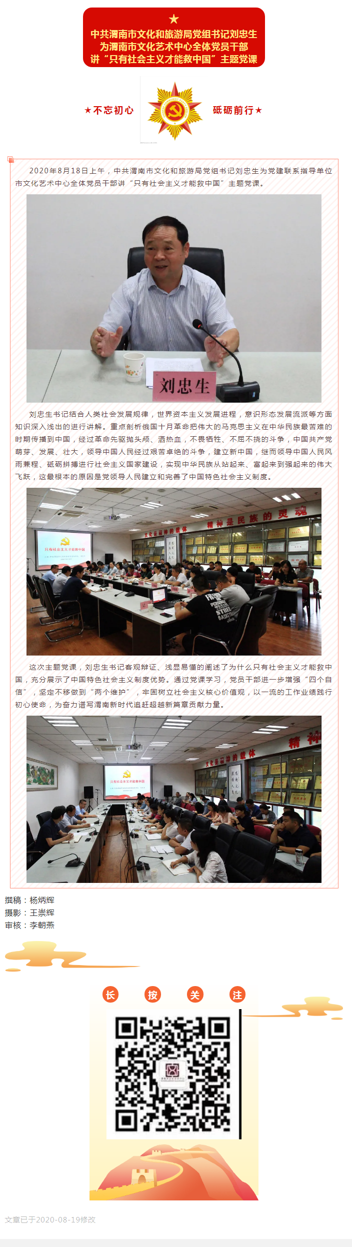 中共渭南市文化和旅游局党组书记刘忠生 为渭南市文化艺术中心全体党员干部 讲“只有社会主义才能救中国”主题党课