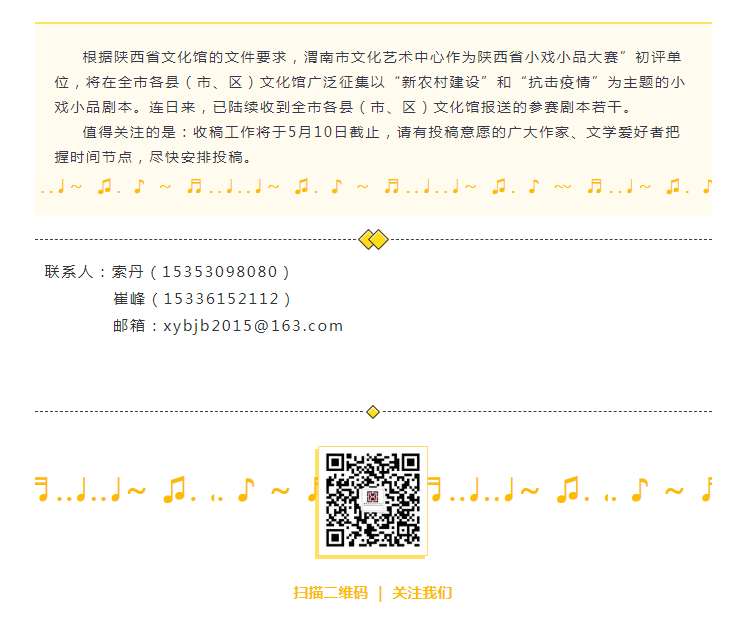 “陕西省小戏小品大赛”征稿工作 将于5月10日截止!