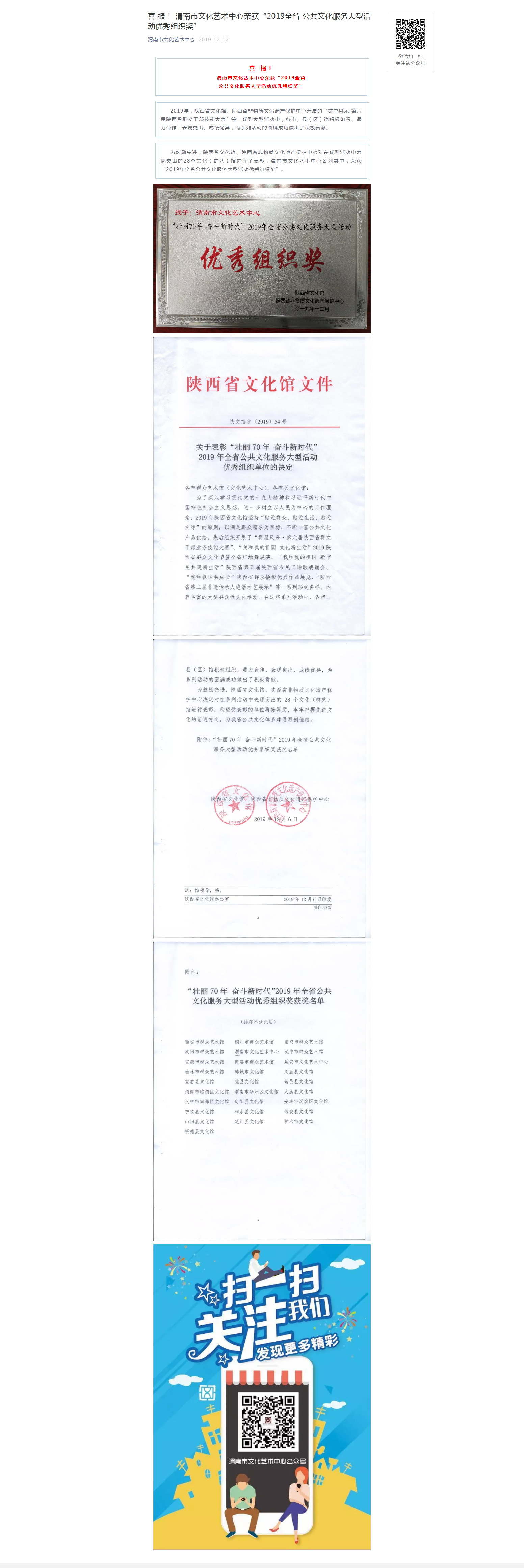 喜 报! 渭南市文化艺术中心荣获“2019全省 公共文化服务大型活动优秀组织奖”